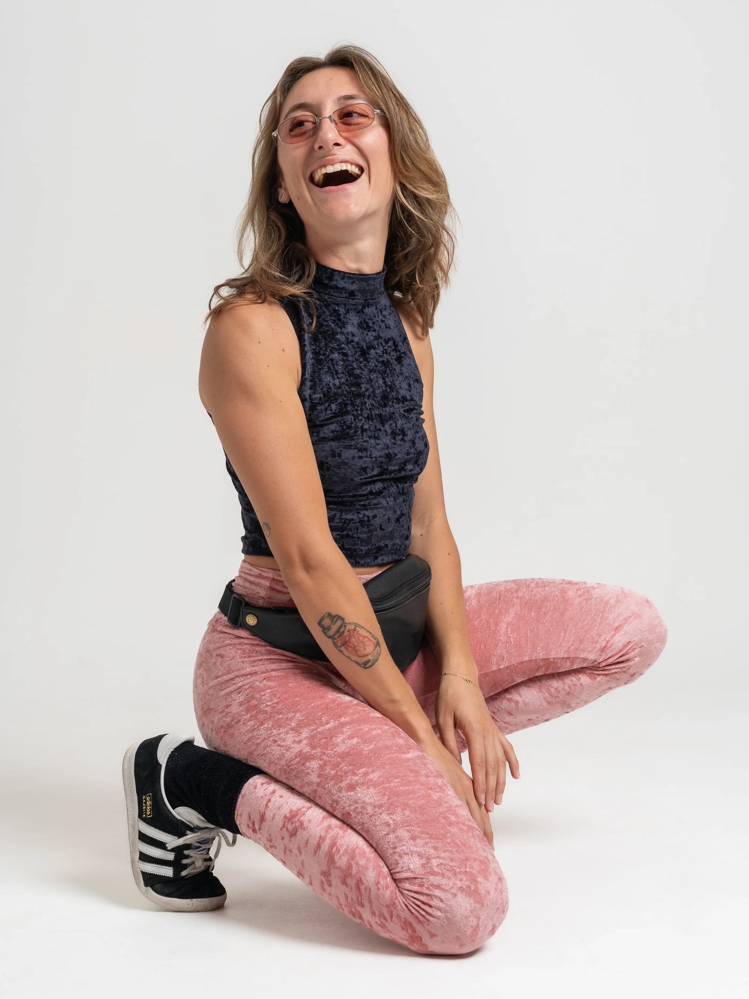 Legging velours rose poudré taille haute – Douceur & Sensorialité