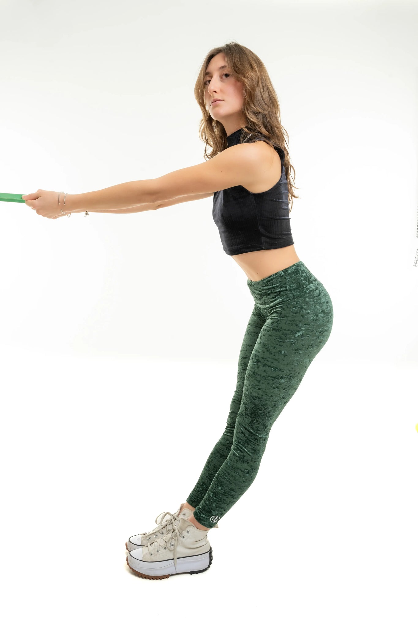 Legging velours vert intense taille haute – Élégance & Profondeur